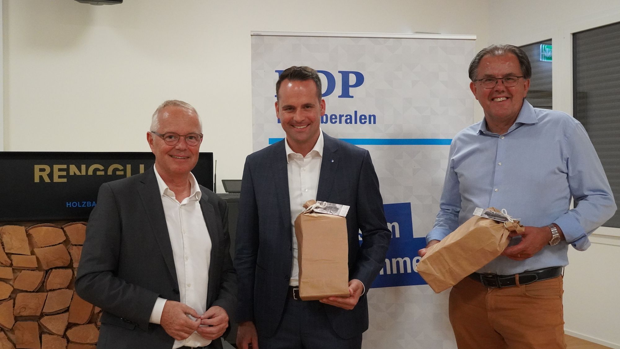 Bei der anschliessenden Fragerunde wurde über die aktuelle Sicherheitspolitik, den Fachkräftemangel in der Wirtschaft und die Sicherung der Altersvorsorge diskutiert. Danach führten kompetente Mitarbeitende der Renggli AG durch die Produktion. Beim abschliessenden Apéro mit Risotto konnten die Diskussionen im persönlichen Gespräch vertieft werden. Der gegenseitige Austausch wurde sowohl von den FDP-Bundesparlamentariern als auch von den anwesenden Besucherinnen und Besuchern sehr geschätzt.